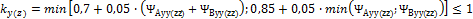 The value ky(z) can be calculated according to clause R10.12.1 in ACI 318-05 , if type of calculation is Code dependent, see chapter "5.4 System lengths and buckling settings". The following formulas are then used for calculation effective length factor