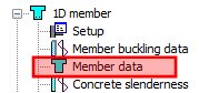 This local setting can be defined via item Member data (tree Concrete > 1D member ) and contains default parameters for design reinforcement and check of concrete