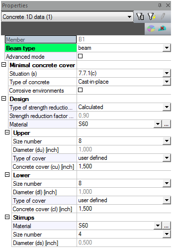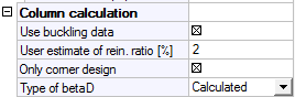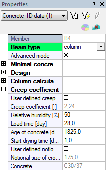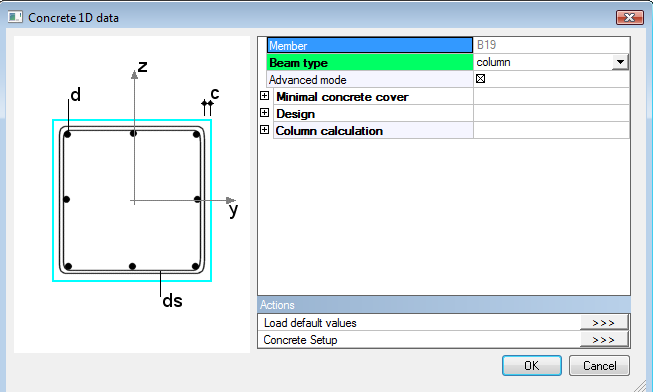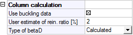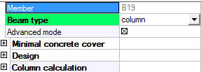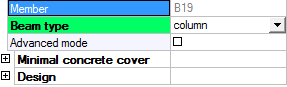 The change of Beam type has influence to design and check reinforcement, because different calculated method is used for column and beam. On the other hand, Beam type has influence to properties, which will be presented in member data too. There are following properties and group of properties for Beam type = Column: