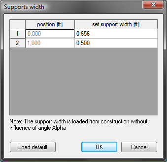 - Support width – editbox; default support width in case when all support widths are the same; visible only if the dialogue above includes supports width the same width