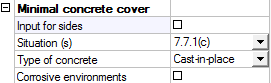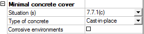 - Situation – combobox; values depends on type of concrete (precast or cast-in-place); the concrete cover is calculated according to selected situation type
