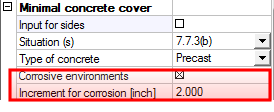 Increment of minimum concrete cover for corrosive environments defined in Increment of corrosion, see picture below |