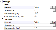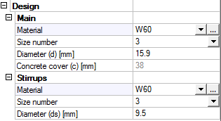 - Diameter – read only value; diameter of the bar used for design which correspond with selected size number