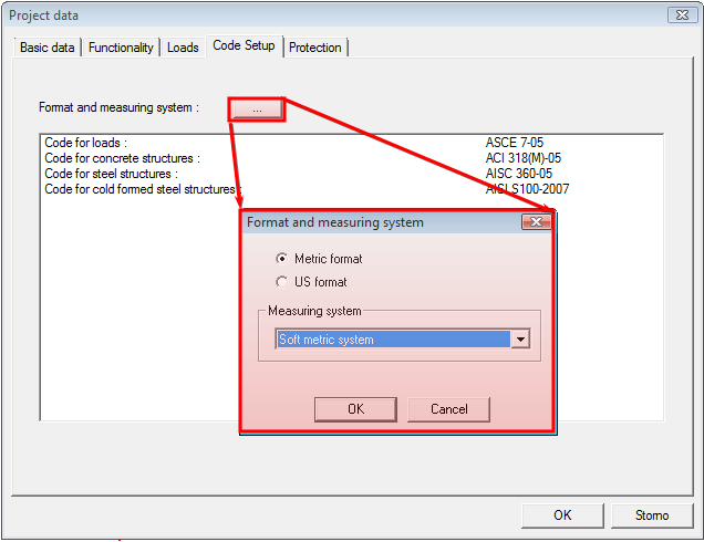 There is possibility to set type of units and measuring system for definition of diameter of reinforcement in dialog Project data > tab sheet Code setup