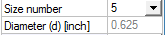 Diameter of reinforcement for imperial and Soft metric system is defined via Size number (item diameter is not editable if value of Size No from the list is selected).If user value of size number (value, which is not in the list) is defined ,then item diameter is editable and value of diameter is calculated for: