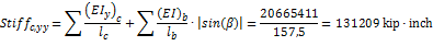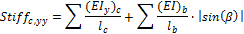 Input data: nsup,yy = 2 (support in direction z-axis of LCS [X=Rigid] and bending support about direction z-axis of LCS [Ry=Rigid] of compression member are rigid) nsup,zz = 1 (support in direction y-axis of LCS [Y=Flexible] of compression member is flexible) Stiffsup,x = 0 because [Z=Free] Stiffsup,y =Stifness Y=57,1kip/inch = 88504,8 kip·inch because[Y=Flexible] Stiffsup,z= 0 because [X=Rigid] Stiffsup,yy = 0 because [Ry=Rigid] Stiffsup,zz =0 because [Rx=Free]