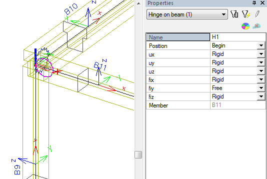 Member B9 (Only hinges defined at head or foot of column or in linked beams) |