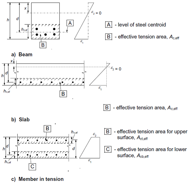 The effective reinforcement ratio obtained from the equation 7.10 from [2] EN1992-1-1 ρp,eff = As / Ac,eff |