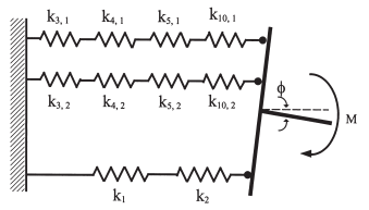 Stiffness model for strong-axis bending for bolted beam-column joint. There might be different components used in the model based on the connection type. (See also chapter: "Stiffness coefficients").