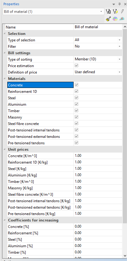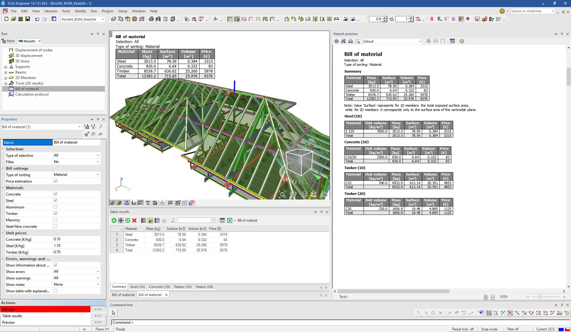 The Bill of material command - available for PPEdefault since the release of SCIA Engineer 18.1 - enables you to get data about material quantities (volume, mass or surface) for 1D and 2D structural elements. Those results can be calculated for the entire model or just a selected part of the structure. Moreover, you can define for what materials specifically you want to get the BOM results and which type of predefined sorting with/without the price estimation you prefer to get optimal output according to your actual needs.