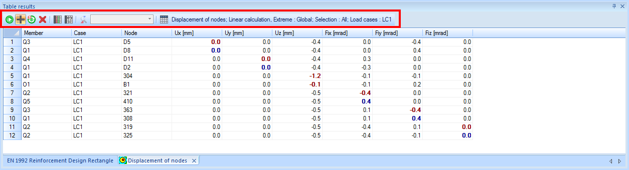 This button is used for loading the numerical results into Table results. Results are displayed according to properties from the property window. Results are stored into the newly created tab (see related chapter). See the tutorial related to the proper use of this button.