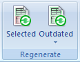 - Regenerate selected: This type of regeneration ensures that all report items which are selected in the Navigator are regenerated regardless on their validity status. This regeneration can be started from the ribbon or from floating button at the Navigator. Locked report items are not regenerated even if they are included in the selection.