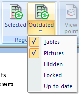 In this menu user can switch ON the regeneration also of hidden, valid or locked items. It is also possible to exclude pictures or tables from the regenerate all. This setting does not affect "Regenerate selected" function.