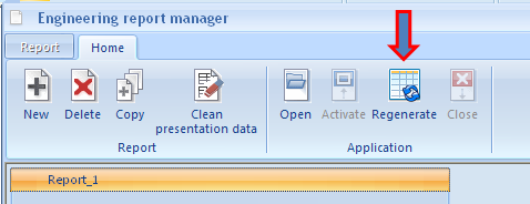Content of other report items is regenerated only on-demand. It means that the regeneration must be started manually by the user. There are two ways supported of on-demand regenerations in the Engineering Report: Regenerate selected items and Regenerate all items.