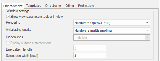 Note: The settings made here determine which mode of rendering and hidden line display is set for the application. This setting does not mean that the rendering of the scene (i.e. of what is displayed on the screen) is really applied. To do so, the rendering must be switched on for the required graphical window. This can be done by means of the appropriate view parameter for the appropriate graphical window.