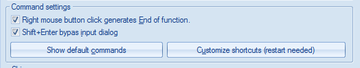 If this option is ticked, the command is immediately performed with last used set of properties (e.g. 'beam' command confirmed by Shift+Enter allows user to input the horizontal beam with last set of properties directly and properties input dialogue is skipped). |