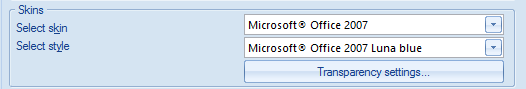 This option allows the user select from pre-defined screen skins of the application. |