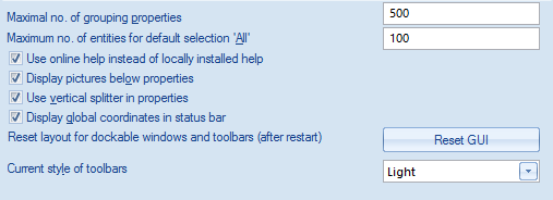This value determines the maximum number of entities that can be selected at a time so that the Property window was filled with the parameters of the selected entities. If the number specified here is exceeded, the property window is left blank and can be filled in only on user’s explicit request. |