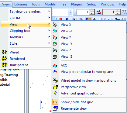 Majority of SCIA Engineer functions is accessible via this menu. There are some functions that can be accessed only from the tree menu of from toolbars.